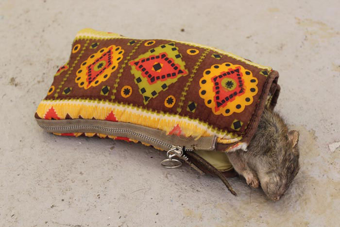 taxidermed rat, motorised heartbeat, sleeping bag by Alison Willoughby