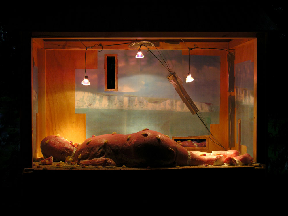 cast of local boy in pink edible rock, sweets, inkjet prints, lights